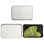 The Jade Massage Stone is an ideal morning ritual tool that helps penetrating serums or moisturizers on skin as well as aiding in depuffing and skin firming. Rooted in traditional Chinese medicine, this authentic jade tool improves blood circulation and promotes healing. Packaged in an imprintable metal case for storage and travel. The stone is crafted for sculpting the jawline, cheekbones and enhancing facial definition. It is suitable for various skin types: normal, dry, sensitive, oily or a combination. Complies with Prop 65. 2.75″ L x 0.125″ W x 2.5″ H