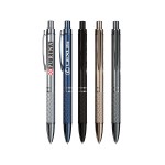 Experience elegance in every pen stroke with the James Ballpoint Pen. This push action plastic pens sleek metallic finish, paired with a matching color grip, clip, and trims adds sophistication to your writing. With SureWrite low lead blue ink, the James pen is the fusion of style and substance. Decorate with default silk screen on the side of the barrel. 5.75″ L
