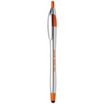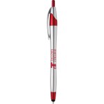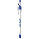 A multifunction upgrade to our most popular pen. With a brushed silver barrel with metallic jewel tone trim, the handy stylus tip for effortless texting & scrolling. Features guaranteed ultrasmooth blue or black ink. Complies with Prop 65. 5.7″ L x 0.36″ Diameter
