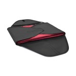 Set of two garment folders to keep you organized while traveling. Mesh ventilation provides breathable storage options for clothes. Folding board included with interior folding guide for shirts and pants. Folds up neatly and secures with hook and loop closures. Top grab handles make it easy to grab and go. Front slip pocket. Complies with CPSIA, Prop 65. 9.5″ H x 14.5″ L