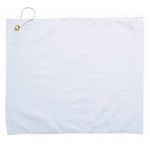Make your opponents throw in the towel! Measuring 15″ x 18″, this soft touch, 100% cotton terry velour, hemmed golf towel includes a corner grommet and hook for easy attachment to golf bags and other gear. Can be imprinted with a logo, company name, event title and more. This towel will be a great giveaway at tournaments, golf course pro shops, sponsorship events and various other promotional venues. Keep your advertising on par with this custom towel. NO set up fees on exact reorders. Complies with Prop 65. 15″ W x 18″ L