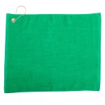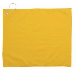 Make your opponents throw in the towel! Measuring 15″ x 18″, this soft touch, 100% cotton terry velour, hemmed golf towel includes a corner grommet and hook for easy attachment to golf bags and other gear. Can be imprinted with a logo, company name, event title and more. This towel will be a great giveaway at tournaments, golf course pro shops, sponsorship events and various other promotional venues. Keep your advertising on par with this custom towel. 50% off set up on exact reorders. Complies with Prop 65. 15″ W x 18″ L