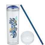 16 oz. combo tumbler features double-wall AS insulation and includes two lids. Use the cold drink lid with the color straw for your iced drinks or the colorful hot sipper lid for your coffee or tea. Hand wash only, do not microwave. BPA Free. Complies with Prop 65. 2 7/8″ W x 8 1/2″ H x 2 7/8″ D