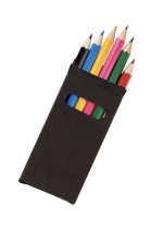 Show that your business is where people should go to fulfill their artistic needs with this wooden pencil set! Inside of a sleek black box comes six genuine wooden colored pencils. This is a great item to offer students, artists, and more. You can have it customized with your company name or logo to make a bold impression. Interest people in more of what you have to offer! Pencil colors are red, pink, yellow, green, blue, and black. Complies with CPSIA. 1.75″ W x 3.5″ H