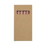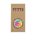 Brighten your day with these wooden colored pencil sets! Packed inside a kraft-style box comes six genuine wooden colored pencils – red, pink, yellow, green, blue and black. Wood pencil casings are natural wood and may vary in color. Complies with CPSIA, Prop 65. 1.75″ W x 3.5″ H