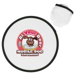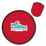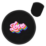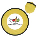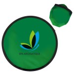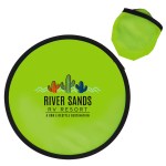 Have some old fashioned fun at your next outdoor marketing or social activity or event with these cool, colorful and customizable flying disc toys that come with their own storage pouches. Made of polyester material, these round 10″ flyers have a foldable design that allows them to be carried in the included color matched storage pouch. They’re safe fun to toss and throw! Available in assorted colors. Add your school, sports team, organizational or company logo or message to customize. 10″ Diameter