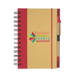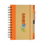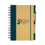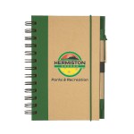 Keep your best ideas inside this eco-inspired notebook! Designed with a hardcover, this spiral notebook includes 80 lined pages, elastic band closure and a matching pen with a paper barrel. Add a brand name, logo or message to create a wonderful promotional gift or giveaway! Complies with Prop 65. 5″ W x 7″ H