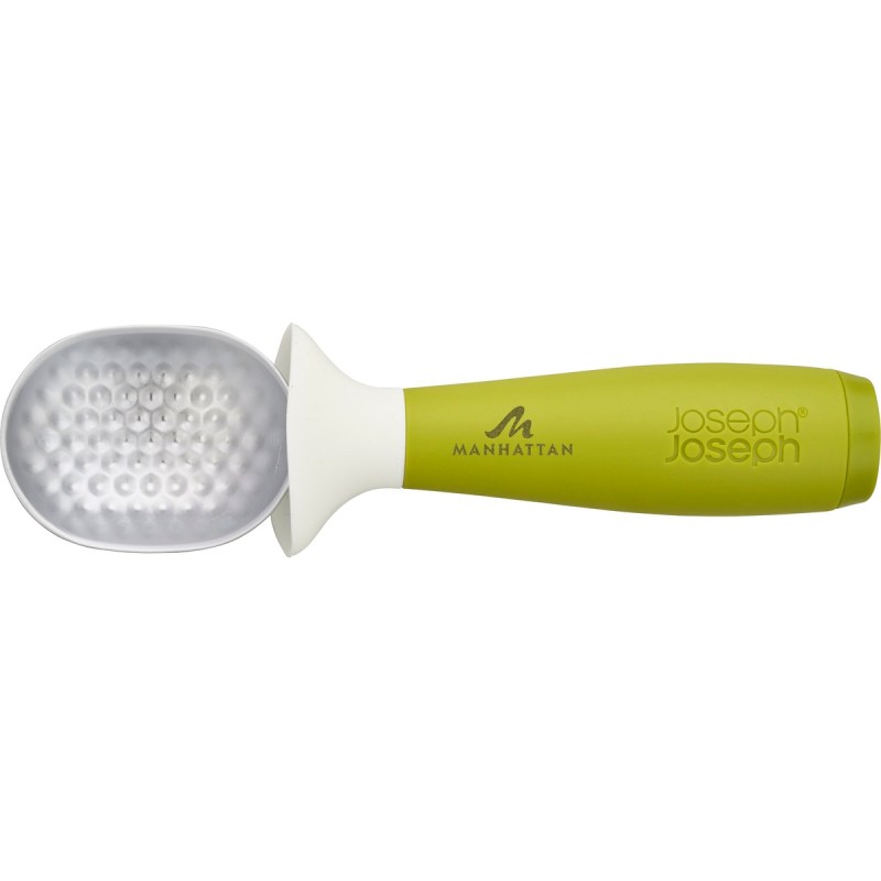 BPA free Integrated drip-catching collar Stands upright between scoops Tough Zinc alloy head cuts through hard ice-cream and sorbet with ease Textured surface helps release scooped ice-cream Dishwasher safe. 2″ D x 2″ W x 7.25″ H