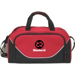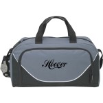Zippered front pocket, drawstring mesh water bottle side pocket, zippered main compartment, handles, adjustable shoulder strap. Complies with Prop 65. 19″ W x 9″ H x 11″ D