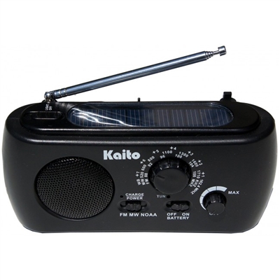 The Kaito KA322W is designed for both everyday use and emergency preparedness applications. It offers different methods to keep you informed including DC 5V USB, three AAA batteries (not included), the built-in rechargeable Li-ion battery that can be charged by an adapter, hand cranking or the solar panel. The KA332W covers a wide spectrum of broadcasting including AM, FM and all 7 NOAA weather channels. 7″ L x 2 3/4″ W x 2″ H