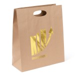 The Karen Eco Die Cut Shopper is made with 100% recycled paper with a minimum of 60% post consumer content. The bag features 140 GSM kraft paper, die cut handles, and a cardboard bottom insert. 12″ W x 14″ H x 5″ D