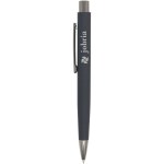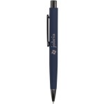 The executive pen with the cashmere feel! Oval shape with soft touch finish to fit comfortably in the hand. Matte corporate colors with bold gunmetal trim. Generous laser engraved imprint makes your message stand out. Complies with Prop 65.