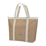 The KEEPCOOL(R) Nairobi Jute Shopper Cooler blends classic style with everyday function. Featuring contrasting cotton webbing handles, a roomy insulated interior with PEVA lining, and a front slash pocket, it’s perfect for the market, office, or a picnic. Add ice packs for extended cooling on longer trips. Complies with CPSIA, Prop 65. 7.09″ W x 16.93″ H x 24.41″ L