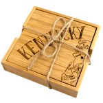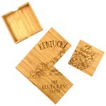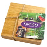 This State Puzzle Coaster Set with Case offers a natural solution for protecting tabletop. These sturdy coasters are crafted from organically-grown Moso® bamboo, an environmentally-friendly material solution that quickly re-grows once harvested. Bamboo is both lightweight & durable a perfect choice for coasters! The coaster set includes a handsome case to store coasters neatly when not in use. The coasters are easy to care for as well: simply wipe them with a damp cloth to clean. Complies with Prop 65. 4″ W x 4″ H
