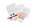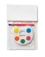 Inspire creativity in your youngest customers and supporters with these kids paint sets! This kit includes a white plastic palette of watercolor paints, a paintbrush, four illustrations to paint, and a full color custom header card. Please specify transportation or animal theme. If no theme is selected, we will send an assortment. Complies with CPSIA, Prop 65. 4″ W x 6.25″ H