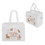 The Kingston 80GSM recycled non-woven polypropylene heat-sealed tote is an eco-friendly and durable choice for everyday use. Crafted from 100% recycled material, it features reinforced 15″ handles, a spacious gusseted design, and a premium heat-sealed finish. Lightweight yet strong, this tote is ideal for groceries, trade shows, events, or daily errands. 13.75″ L x 7.5″ W x 14.25″ H