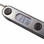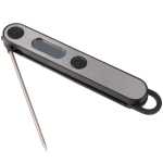 The Kitchi Foldable Food Thermometer is a practical and precise tool for any kitchen. Featuring a foldable stainless-steel probe, it’s designed for easy use and convenient storage. The large display with a built-in temperature guide helps you monitor and control cooking temperatures with ease. Equipped with a precision temperature sensor, this thermometer provides fast and accurate readings, making it ideal for cooking meats, baking, and more. The probe is easy to clean with hot, soapy water. Batteries not included. Requires one AAA Battery. 5.98″ D x 0.98″ W x 0.79″ H