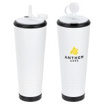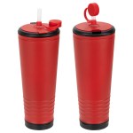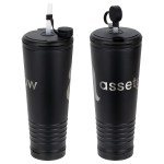 Cheer in style with this unique Klaxon 23 oz Stainless Steel/Polypropylene Tumbler with Built-In Horn, featuring a stainless steel outer and durable black polypropylene inner lining. A built-in noise-making horn lets you support your favorite team or sound an alarm. Color matched rubber press on lid has slits to insert plastic straw. Clear plastic straw has color matched cap, for a fun accent, that protects straw from dirt and helps prevent spills. BPA-free and FDA-certified, it’s perfect for game days and everyday hydration. Hand wash only to keep it looking and performing its best! Complies with FDA, Prop 65. 9.75″ H x 4″ Diameter