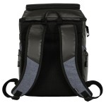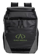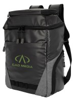 This premium cooler backpack is made of easy-to-wipe-clean recycled materials. It includes dual zippered compartments, a front zippered pocket, two insulated zippered side pockets, an attached bottle opener, daisy chains, and padded shoulder straps. Easily fits 24 cans plus ice for enjoying a full day of activities. 11.0625″ W x 17.3125″ H x 6.125″ D