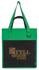The thermal insulation on this tote is perfect for keeping your things cold on the way home from the store. Use the pen loop, d-ring, and front slip pocket to keep your belongings organized. 13″ W x 15″ H x 10″ D