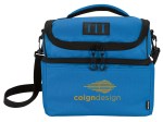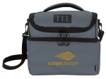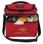 This dual-compartment lunch cooler is great for the workplace or weekend fun. The bottom compartment features a heat-sealed PEVA lining and provides ample room for all your goodies. Any extras will fit nicely in the top. 9.875″ W x 9.5″ H x 6.75″ D