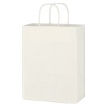 Made Of Kraft Paper. Serrated Top. 5″ Gusset. Reusable. Recyclable. Matching Kraft Twisted-Paper Handles. Complies with Prop 65. 5″ D x 10″ W x 13″ H
