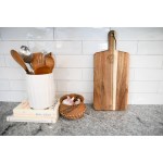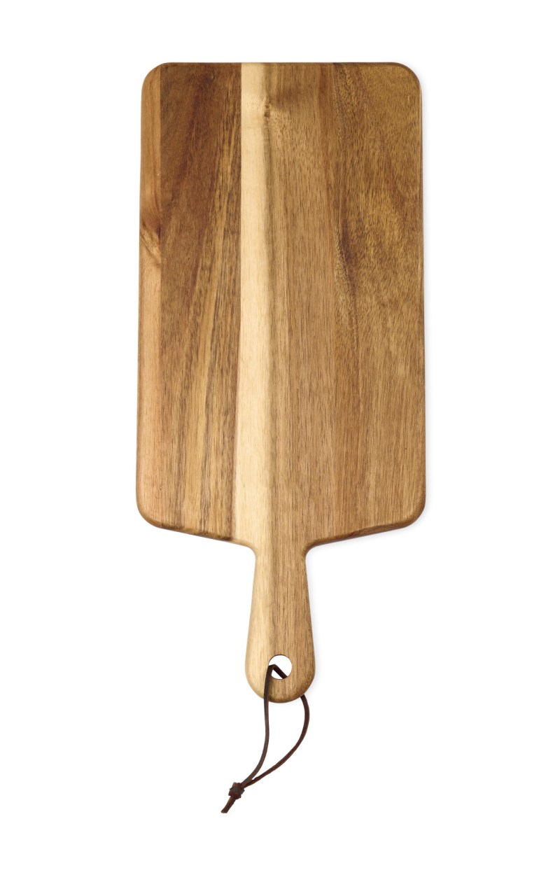 Handcrafted of stunning acacia wood, our La Cuisine Serveware was inspired by the love of a French Charcuterie. Whether you’re cutting vegetables or cheese, serving guests or simply leaving it hanging in your kitchen, this board has as much functionality as they do beauty. KEY DETAILS: Acacia wood board. Rawhide hanging loop. Due to the natural materials, each piece will be unique. Hand Wash Only. Made in China. Complies with CPSIA, Prop 65. 7.09″ W x 0.59″ H x 16.54″ L