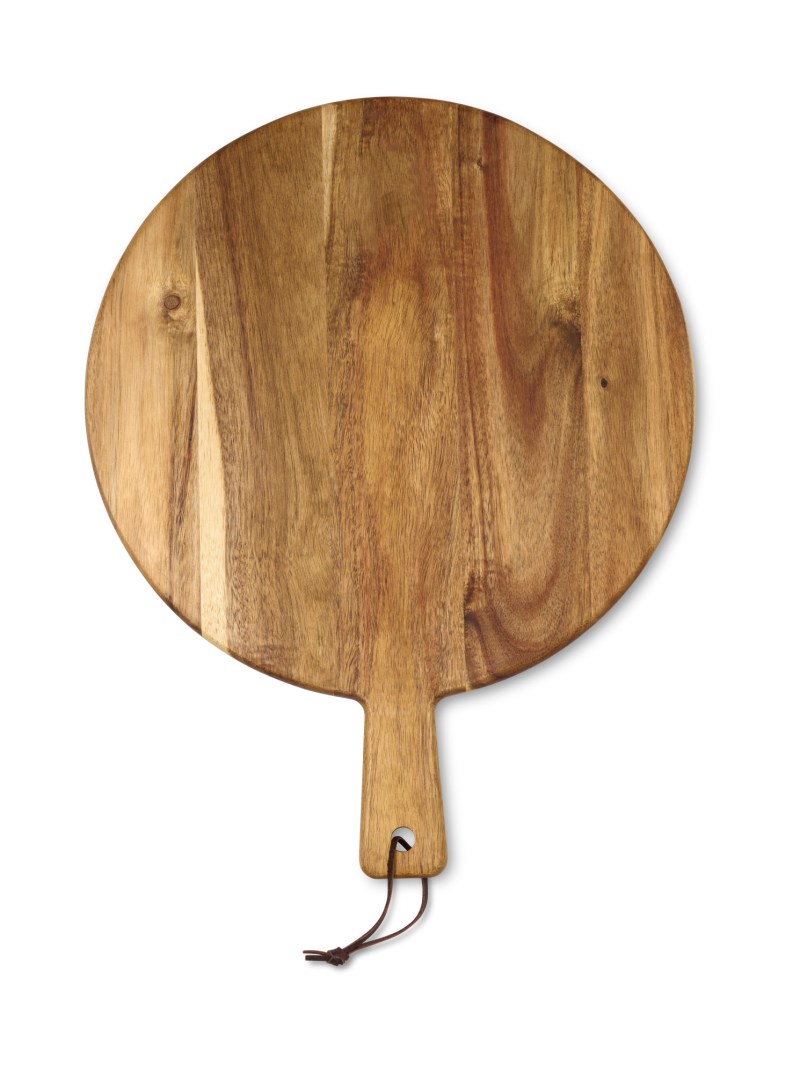 Handcrafted of stunning acacia wood, our La Cuisine Serveware was inspired by the love of a French Charcuterie. Whether you’re cutting vegetables or cheese, serving guests or simply leaving it hanging in your kitchen, this board has as much functionality as they do beauty. Rawhide hanging loop. Due to the natural materials, each piece will be unique. Hand Wash Only. Made in China. Complies with CPSIA, Prop 65. 13.78″ W x 0.59″ H x 17.52″ L