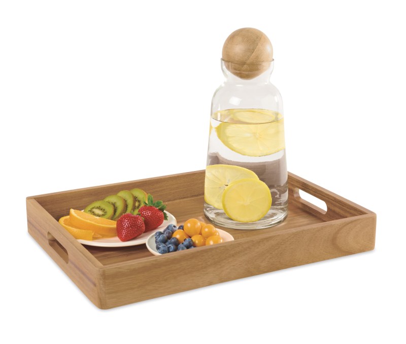 Why they will love it! This tray is a natural multi-tasker! Handcrafted of stunning acacia wood, our La Cuisine Serving Tray was inspired by the love of a French Charcuterie. Made from Acacia wood, this wood tray is a lovely addition to the home or office. The tray can be used to help keep a desk or table organized, to beautiful entertaining tray for barware or a charcuterie spread and will also be perfect when serving breakfast in bed. Complies with CPSIA, Prop 65. 2″ W x 11.75″ H x 16″ L