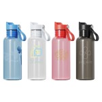 The Lagoon 20 oz RPET Bottle is designed specifically for cold beverages and daily hydration. Made from 63% recycled RPET material, it’s an eco-conscious choice for sustainable drinkware. Featuring a push-button lid for one-handed operation and a silicone carry handle for added portability, it’s perfect for on-the-go use. BPA-free, FDA certified, and hand wash only, this bottle combines style, convenience, and responsibility in one sleek design. Complies with FDA, Prop 65. 8.75″ H x 2.875″ Diameter