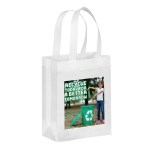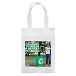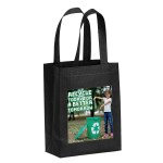 The eco-friendly Lake™ R-PET Non-Woven Tote is made from 100% post-consumer content and features sturdy 80 GSM material, heat-sealed handles, and a bottom gusset. An optional plastic bottom insert is available for purchase. Handles measure 1″W x 14″ long. 8″ W x 10″ H x 4″ D