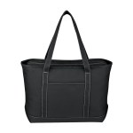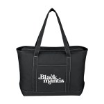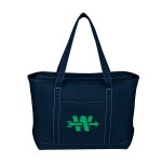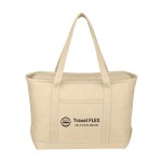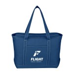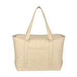 The Large Starboard Cotton Canvas Tote Bag is a durable, eco-friendly bag with a top zippered closure and reinforced handles. Made from 24 oz. cotton canvas, it comes in various colors and is perfect for the beach, errands, or travel. Customize with your logo or message for a promotional product your customers will love! Handle: 30″. 24″ W x 14″ H x 7″ D