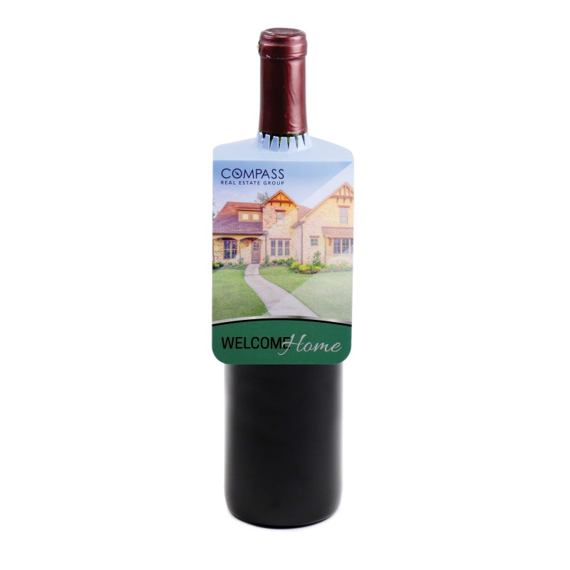 Say thank you, celebrate an occasion, promote your brand and announcing new products are only a few of the ways our new Bottle Hangers can increase your brand exposure and get your message directly in front of your customers. Low cost with your full color, full coverage graphics on both sides included on durable white cardstock with pre-punched star-cut hole to fit & stay on most all bottles, creased top so hanger rests against bottle. Specify rounded or straight bottom corners. 3 5/16″ W x 7″ H