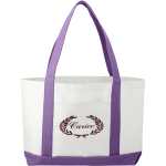 The Large Boat Tote is a durable, stylish PolyCanvas bag inspired by nautical design. It features a large open main compartment for storing your accessories, plus an open front pocket to hold extra items. The Boat Tote has double 23” handles that make it easy to lift, carry, or sling over one shoulder, no matter where your day takes you. 4.00″ D x 18.00″ W x 11.25″ H