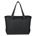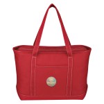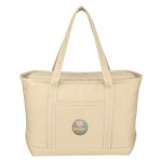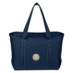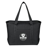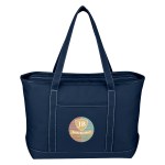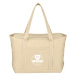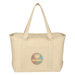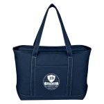Made Of 24 Oz. Cotton Canvas. Front Pocket. Top Zippered Closure. 30″ Handles. Spot Clean/Air Dry. Complies with Prop 65. 7″ D x 24″ W x 14″ H