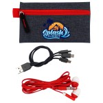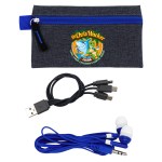 Introducing the spacious G Line Techie Pouch complete with a convenient keyring attachment for on-the-go ease. Elevate your travel experience with our vibrant travel earbuds, designed to bring a pop of color to your journey. Our innovative 3-in-1 charging cable boasts a striking array of colors and is equipped with a versatile multiple USB adaptor. This patented technology is compatible with a variety of devices, including IOS, Micro USB, and Type C USB, ensuring you stay connected wherever you go. Elevate your tech game with our cutting-edge accessories. Complies with CE, Prop 65. 7″ L x 4″ H