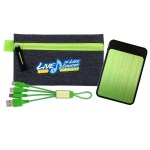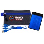 Introducing the cutting-edge Large G Line Techie Pouch featuring a convenient zipper closure. Power up your devices with the UL Vivid High Density Volt Power Bank boasting an impressive 5000 mAh capacity and UL certification for guaranteed safety. Stay connected with the sleek Metallic Loop 3-in-1 Cable, equipped with Type C and USB connectors for ultimate versatility. Upgrade your tech game with these essential accessories today! Complies with CE, Prop 65. 7″ L x 4″ H