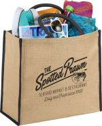 Carry your favorite essentials in style with the spacious yet lightweight Large Jute Tote, the perfect bag for transporting books, clothing, snacks, electronics, and more. It features an open main compartment and double 17″ handles that make this jute bag easy to carry anywhere. Its spacious surface is perfect for decorating with your logo, subject to certain restrictions due to the nature of the material. 7.80″ D x 15.75″ W x 14.00″ H