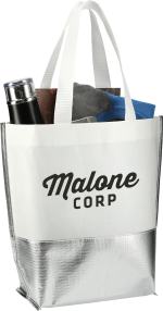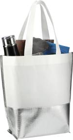The Large Laminated Metallic Bottom Tote features a large open main compartment that is accented with a metallic bottom panel. The webbed 10” drop grab handles allow for easy carry. This tote makes a perfect, reusable alternative to plastic bags. This tote was previously Leed’s 2301-54, Large Laminated Metallic Bottom Tote. Water-resistant laminated material Large open main compartment Metallic bottom panel accent Webbed 10” drop handles Reusable. 7.50″ D x 19.50″ W x 14.00″ H