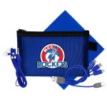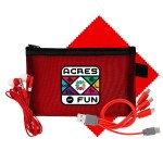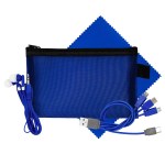 Introducing our innovative and environmentally friendly Large Recycled Mesh Zip Pouch, complete with a Colorful 4-in-1 charging cable featuring a Multiple USB adapter. This versatile pouch is compatible with IOS devices, Micro USB, and Type C USB, all backed by a patented design. With USB and Type C USB input capabilities, you can charge your devices on the go with ease. To enhance your travel experience, we’ve included a set of vibrant travel ear buds. And for keeping your devices spotless, don’t forget our Colorful 5 x 5 Recycled PET cleaning cloth. Upgrade your tech accessories with our eco-conscious and stylish collection. Complies with CE, Prop 65. 7.25″ L x 4.5″ H