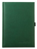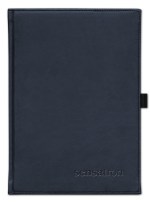 Smooth, padded, faux leather covers with quality thread-sewn book binding. Includes a blind deboss imprint up to 16 square inches. Contains 125 sheets of lined filler, a black elastic pen loop, and blue & silver satin ribbon bookmarks. Imported book, decorated in the USA. 7″ W x 9.5″ H