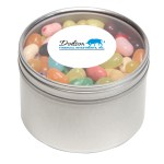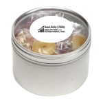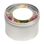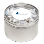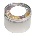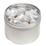 Large Round Window Tin filled with your choice of delicious candy and snacks. During warmer weather perishable items can require special packaging and shorter shipping transit times. Please contact Customer Service for details and charges. 3.125″ W x 2.125″ H x 3.125″ D