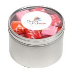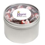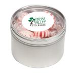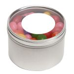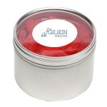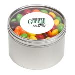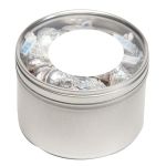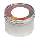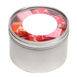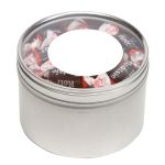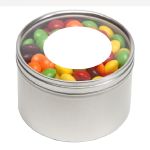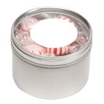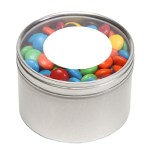 Large Round Window Tin filled with your choice of delicious candy and snacks. During warmer weather perishable items can require special packaging and shorter shipping transit times. Please contact Customer Service for details and charges. 3.125″ W x 2.125″ H x 3.125″ D