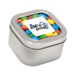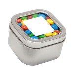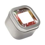 Large Square Window Tin flled with your choice of delicious candy and snacks. During warmer weather perishable items can require special packaging and shorter shipping transit times. Please contact Customer Service for details and charges. 3.0″ W x 2.0″ H x 3.0″ D