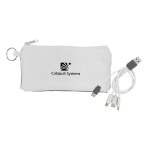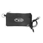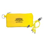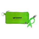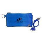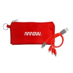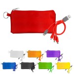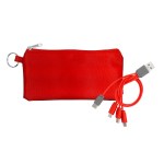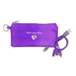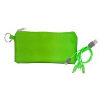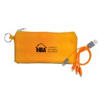 Introducing our innovative polyester pouch featuring a stretchy black lycra back and a convenient keyring for easy portability. This colorful 4-in-1 charging cable is equipped with multiple USB adapters, making it compatible with IOS devices, Micro USB, and Type C USB. Our patented design includes both USB and Type C USB input for maximum versatility and convenience. Complies with CE, Prop 65. 6.75″ L x 3.25″ H