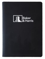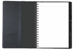 The 7″ x 10″ Vienna Refillable features a smooth, stitched cover that wraps around a removable wire-bound notebook. A business card pocket and matching pen loop are located inside the cover. The refillable notebook has black paperboard covers, 100 sheets of white, lined filler, and black wire binding. Includes a blind deboss imprint up to 16 square inches on the cover. Shipped in a glassine envelope. Imported outer shell, decorated in the USA. 10″ L x 7″ W x 0.75″ D