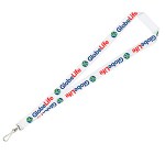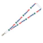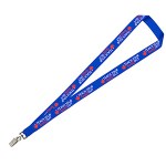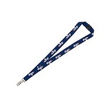 A 3/4″ width Recycled Polyester (RPET) lanyard with a one color silkscreen imprint included in the price on the front sides (left and right) of the lanyard. These lanyards are produced in our overseas factory and air shipped directly to your customer. View Lanyard Attachments image for selection of attachment options. 18″ Long (per side) x 3/4″ W.