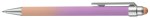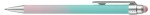 Soft-touch, ombre-color mix barrels coupled with slide-action retraction mechanism and color matching stylus. Trendy, colorful and patriotic cascading colors combine for a unique and stylish writing instrument. A stylish and functional writing instrument featuring a smooth stylus tip for touchscreen devices. Designed with a trendy ombre finish and a soft-feel barrel for maximum comfort. This retractable pen is perfect for professionals in medical, real estate, and banking industries who need both writing and tech functionality at their fingertips. Its vibrant, colorful design adds personality, while the stylus tip makes it easy to switch between paper and digital tasks effortlessly. A perfect blend of style, comfort, and practicality! Additional optional imprint location is 1¼” x ½” inline with clip (screen printed). 6.04″ L x 0.48″ W x 0.6″ H