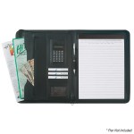 Includes 30 Page Lined 8 ½” x 11″ Writing Pad. Card Holders, Elastic Pen Loop, Mesh ID Holder And Calculator. Complies with Prop 65. 10″ W x 13.25″ H