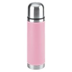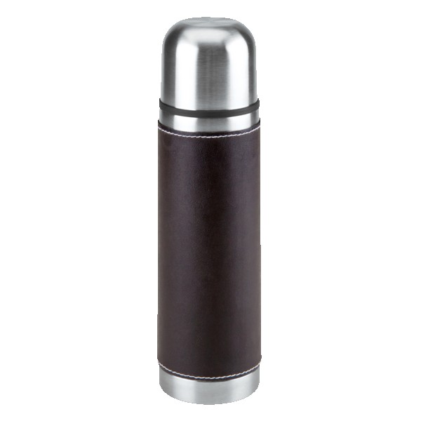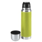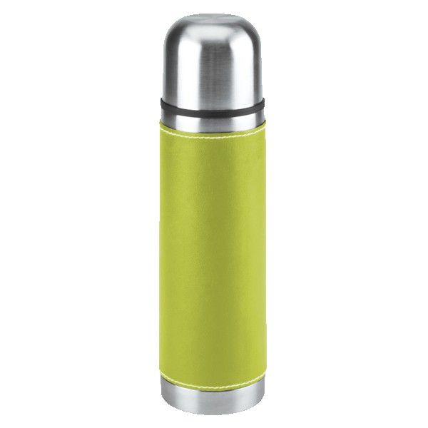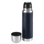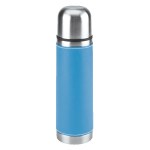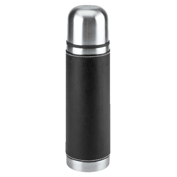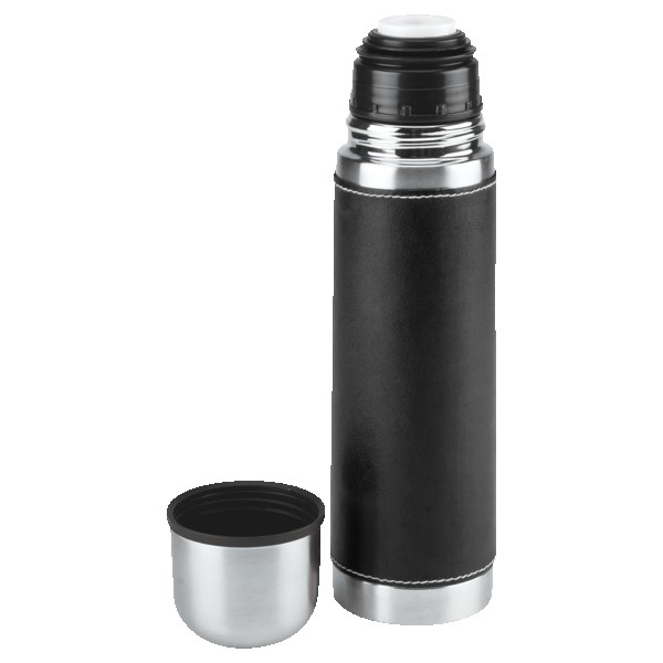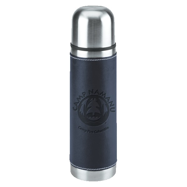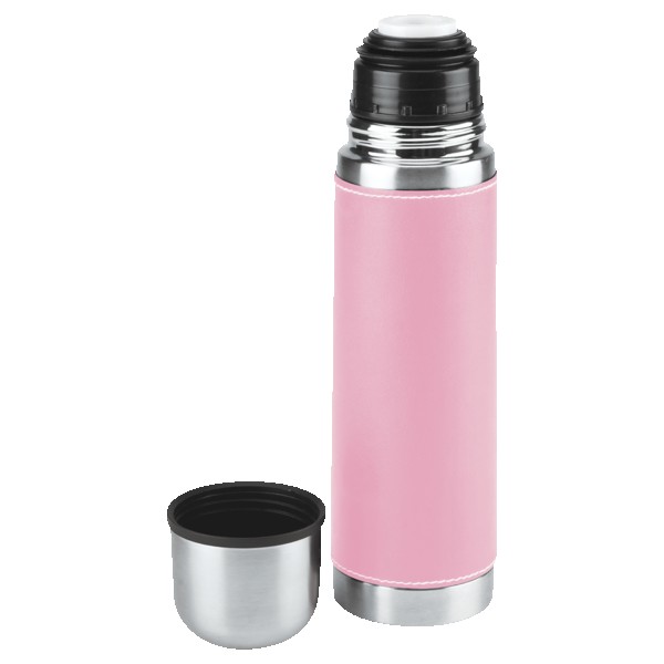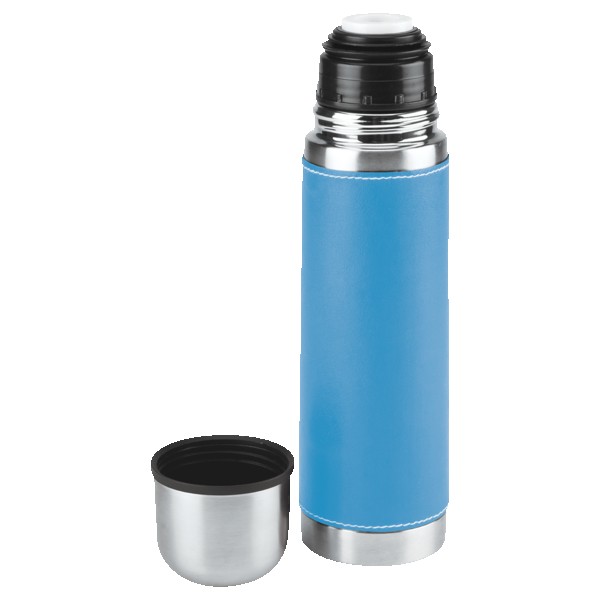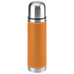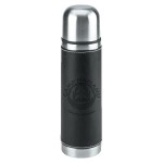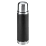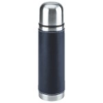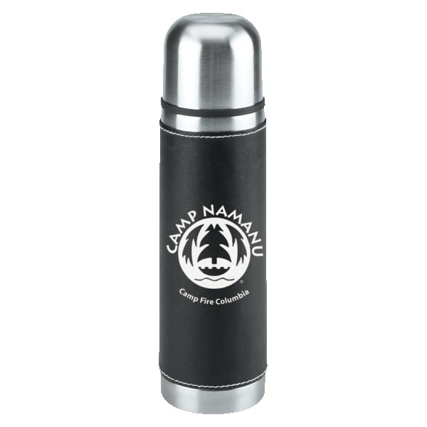 16 Oz. Stainless steel outer wall with plastic liner; full PVC sleeve with white stitching; double wall insulation; stainless steel lid can be used as a cup. Complies with FDA. 9.75″ H x 2.75″ W
